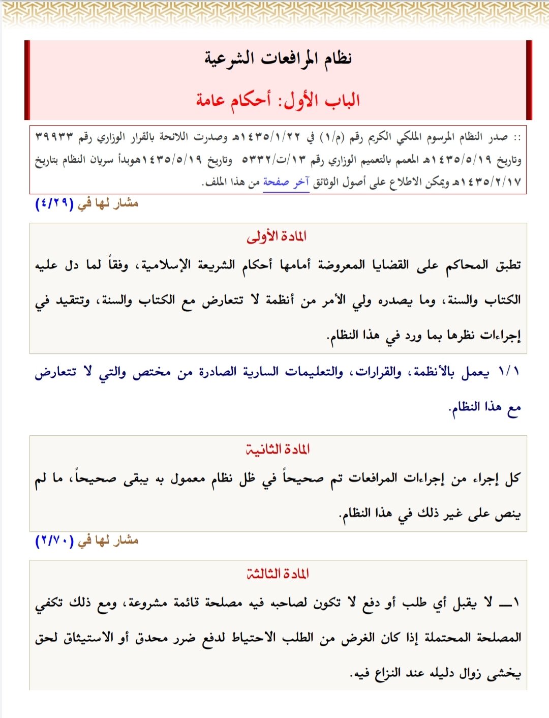 البوابة الإلكترونية لهيئة الخبراء بمجلس الوزراء. فضيلة الشيخ عبدالله بن محمد بن سعد آل خنين. نسخة من نظام المرافعات الشرعية الجديد بصيغة وورد و pdf لم أجد أثناء بحثي في الانترنت على نسخة من هذا النظام بصيغة وورد فقمت بنسخه من موقع وزارة العدل. مرسوم ملكي رقم م 1 بتاريخ 22 1 1435.