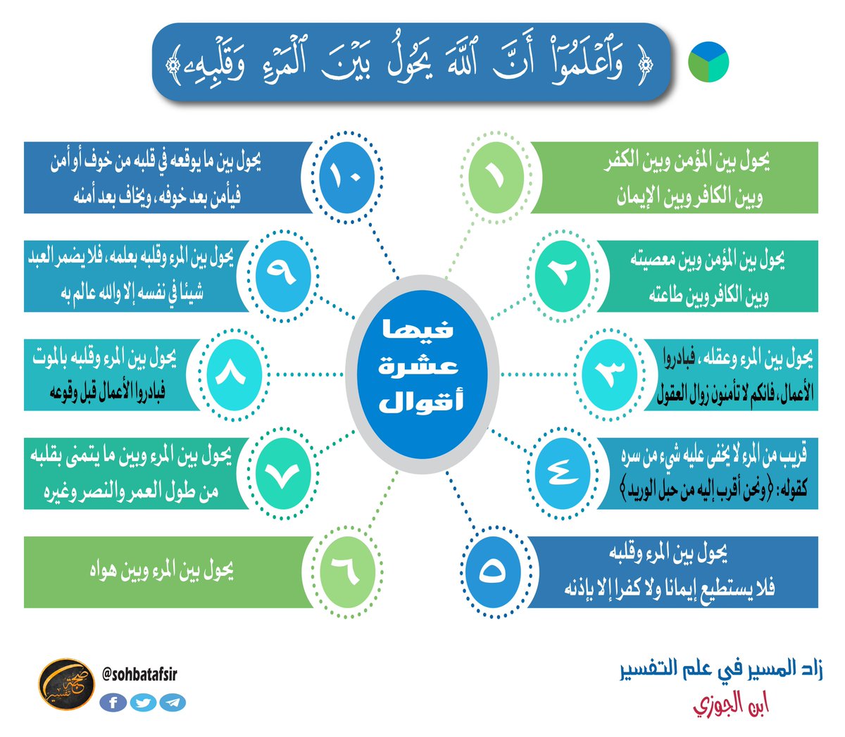 صحبة تفسير A Twitteren الأقوال في قوله تعالى واعلموا أن الله يحول بين المرء وقلبه زاد المسير لابن الجوزي تفسير آية اليوم الثامن الجزء التاسع الجزء 9 رمضان Https T Co Qqg32hstiz